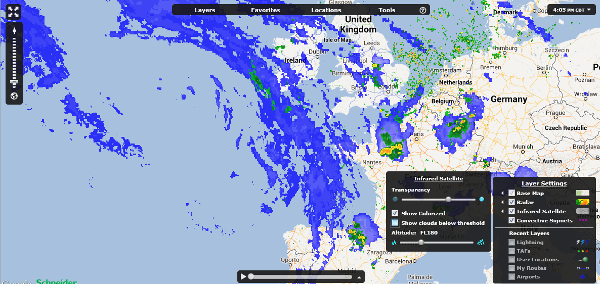 The Forecast Flight Levels available are 050,100,140,180,240,270 as well as a combined MAX (from SFC-FL270) and are available by using the “Flight Level” slider bar in the layer options