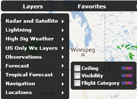 This sub-menu contains the industry most accurate Ceiling, Visibility and Flight Category forecasts that cover North America as well as Europe