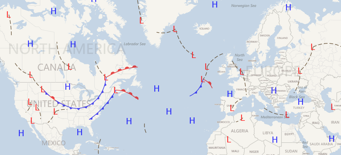 Global Forecast Pressure Centers and Fronts Layer – Fronts H/L
